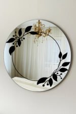 Black Flower tasarım dekoratif yuvarlak ayna.