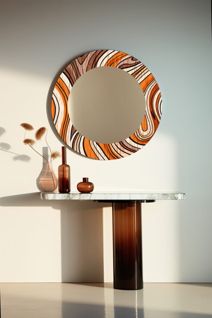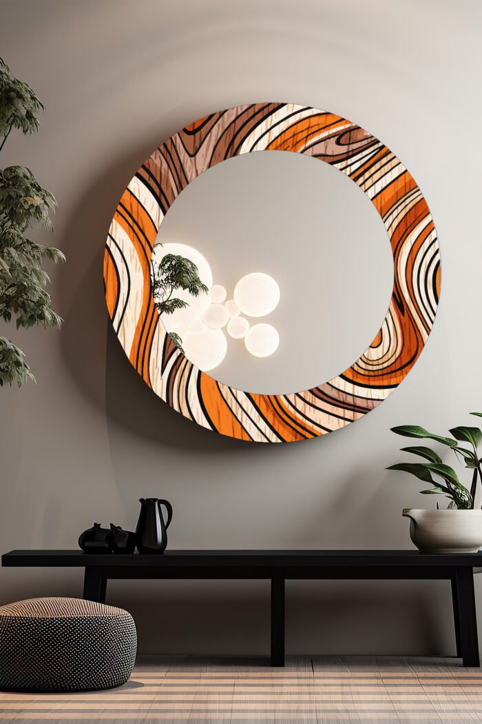 Orange tasarım dekoratif yuvarlak ayna.